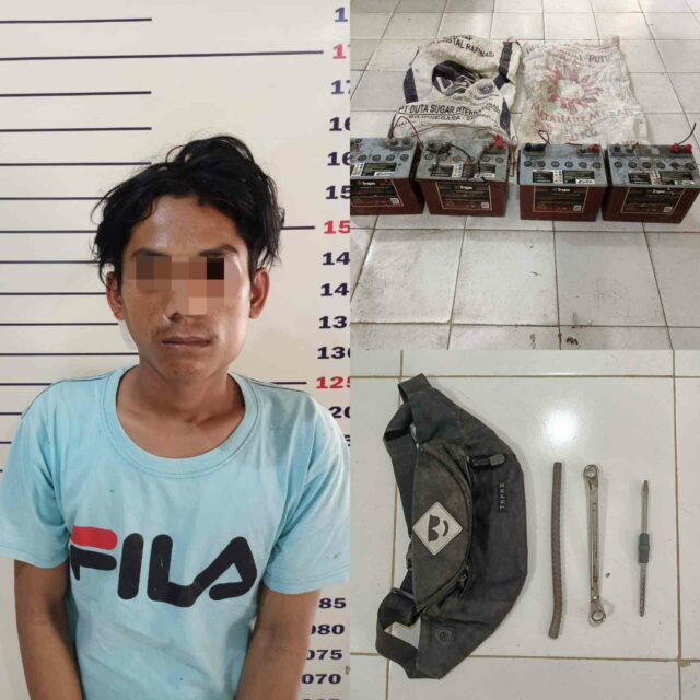 Kemudian pelaku memutus kabel yang ada di Box dan mengambil Accu/Battery lampu jalan kemudian memasukkan kedalam karung dan dijatuhkan ketanah, saat dilihat situasi sepi pelaku lansung membawa hasil kejahatanya. Atas kejadian tersebut korban UPTD Hubda Kementerian Perhubungan dirugikan sekitar Rp. 16 juta ” Tutur Mantan Kapolsek Sidomulyo ini.
