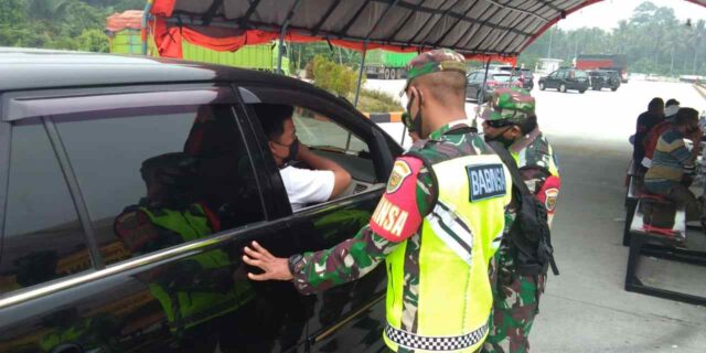 Onlinekoe.com – Kegiatan Pos Pengamanan Pemeriksaan Arus Balik dalam rangka Pengendalian Transportasi Masa Idul Fitri dan Ops Yustisi Covid 19 oleh satuan Koramil 421-07-Sidomulyo , Yonif 143/Twej , Denkesyah , Kes Lanal , Denpom , Polres ,Brimob ,Satuan Pol PP , Dishub , Dinkes dan BPBD