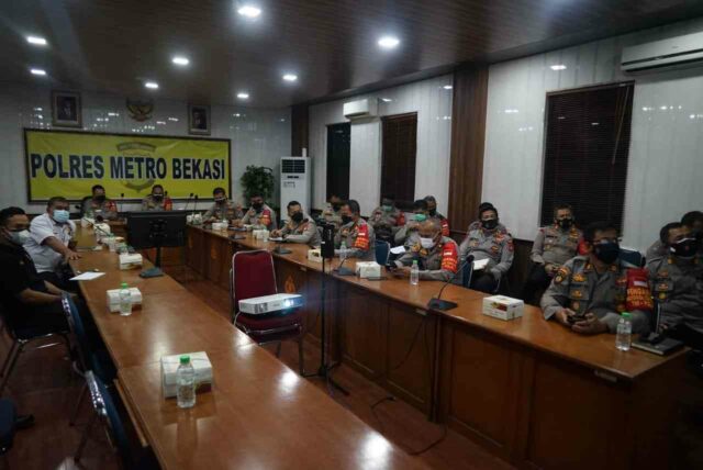 Rapat koordinasi ini diikuti oleh Kabag Ops Polrestro Bekasi AKBP Y Haryudo SE Kasat Binmas Kompol Bowo Lesmono SH, Wakasat Intelkam Kompol Supriyadi, dan Kapolsek jajaran Polrestro Bekasi. (Alex)