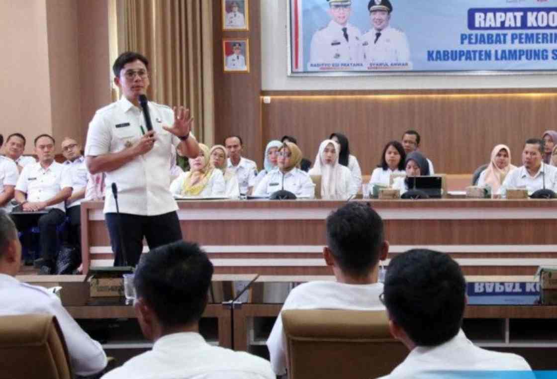 ONLINEKOE.COM LAMSEL, Kalianda – Pemerintah Kabupaten (Pemkab) Lampung Selatan menggelar rapat koordinasi bulanan di Aula Krakatau, kantor bupati setempat, Rabu (10/9/2025).