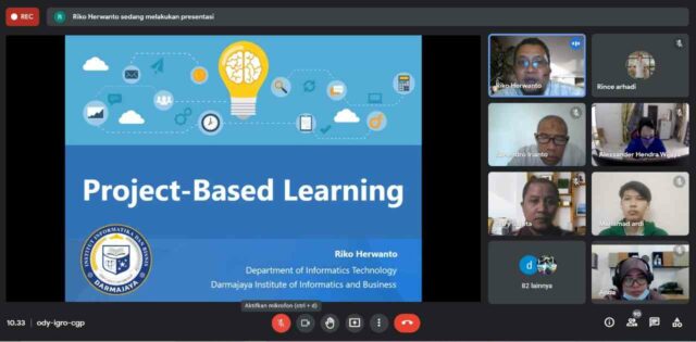Dalam paparannya, Riko menerangkan bahwa Project Based Learning adalah program pembelajaran berbasiskan project. “Di setiap mata kuliah sudah sering dilakukan tugas besar, tetapi di Program Studi Teknik Informatika mulai Semester Genap 2020/2021 dalam mendukung MBKM melakukan PBL lebih intens,” ungkapnya.