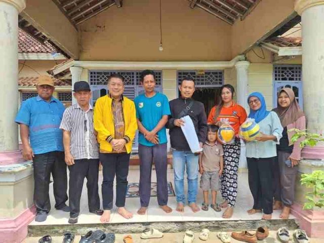 Tulang Bawang Barat – Hujan deras bukan hambatan bagi Anggota DPRD Fraksi Partai Golkar Provinsi Lampung Hi Putra Jaya Umar, didampingi Ketua KTNA Tulang Bawang Barat Sularno melaksanakan kegiatan pembaguan sarana olahraga bola kaki, bola futsal dan bola volly ke Pemuda 12 Tiyuh, di Kecamatan Gunung Agung 9 Tiyuh, Kecamatan Lambu Kibang 3 Tiyuh, Minggu (1 Februari 2026).