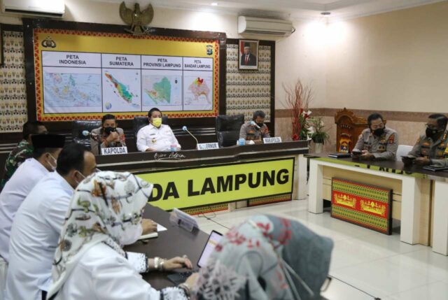 Onlinekoe.com, BANDARLAMPUNG —- Gubernur Lampung Arinal Djunaidi dan Kapolda Lampung Irjen Pol Hendro Sugiatno mengikuti arahan Kapolri Jenderal Listyo Sigit Prabowo terkait kesiapan pengamanan Idul Fitri 1442 H di masa pandemi Covid-19, dalam Rakor Lintas Sektoral 2021, di Ruang Rapat Utama Polda Lampung, Mapolda Lampung, Rabu (21/4/2021).