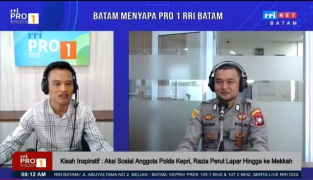 Onlinekoe.com, (Batam) — Studio Pro1 Radio Republik Indonesia (RRI) Batam kembali menghadirkan sosok polisi humanis yang menjadi sorotan publik, Bripka Zulhamsyah Putra, dalam sebuah dialog hangat dan penuh inspirasi, Rabu (10/12/2025). Untuk kedua kalinya, anggota Polresta Tanjungpinang ini diundang sebagai narasumber untuk mengulas perjalanan dan dampak program sosial inovatif yang digagasnya, “Razia Perut Lapar” (RPL).