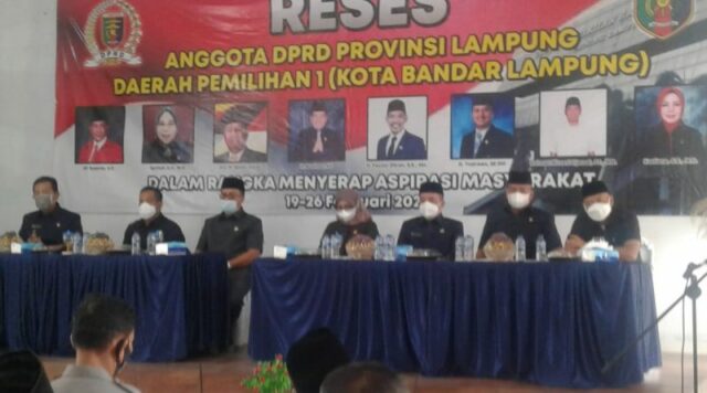 Onlinekoe.com, Bandar Lampung – Dalam rangka mendengar aspirasi masyarakat Anggota Dewan dari Pemilihan Daerah Pemilihan 1 berkunjung ke kelurahaan Kampung Baru Raya Kecamatan Labuhan Ratu Bandar Lampung di Aula KTR Pokdar Provinsi Lampung, Senin (22/2/2021).