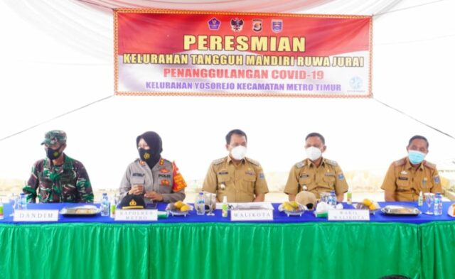 Onlinekoe.com, Metro – Walikota dan Wakil Walikota Metro, dr.H.Wahdi,Sp.OG dan Drs.H.Qomaru Zaman,M.A meresmikan Kelurahan Tangguh Nusantara (KTN) Yosorejo, Metro Timur. Dimana KTN merupakan perwujudan kelurahan yang menjadi pilot project penanganan Covid-19.
