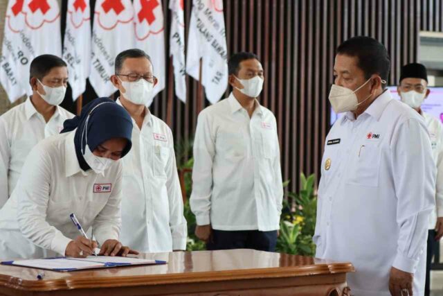 Onlinekoe.com, BANDARLAMPUNG—Ketua Umum Palang Merah Indonesia (PMI) Jusuf Kalla melantik Pengurus dan Dewan Kehormatan PMI Provinsi Lampung Masa Bakti 2020-2025 di Mahan Agung, Rumah Dinas Gubernur Lampung, Jumat (28/05/2021).