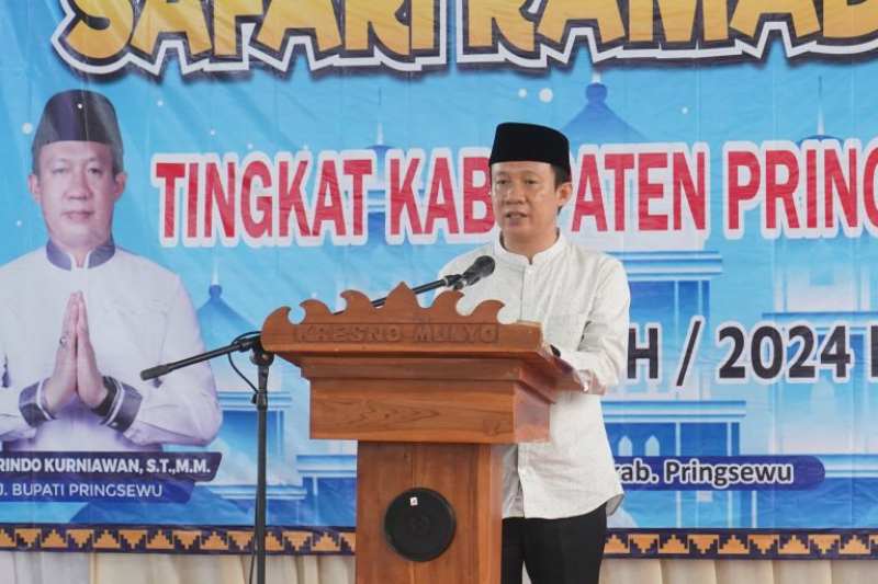Pringsewu – Pemerintah Kabupaten Pringsewu tahun ini telah menyusun berbagai program pembangunan untuk Kecamatan Ambarawa, yang mengacu hasil Musrenbang Pekon dan Kecamatan. Diantaranya peningkatan jalan latasir ruas Pekon Kresnomulyo, Sumberagung dan Ambarawa, serta peningkatan kapasitas struktur jalan rigid ruas PekonTanjunganom, rehabilitasi saluran pembuang Pekon Margodadi dan Ambarawa Timur, di sampaikan Pj.Bupati Pringsewu Marindo di dampingi Sekretaris Daerah Drs.Heri Iswahyudi saat Safari Ramadhan di Masjid Nurul Huda, Pekon Persiapan Kresnomulyo Barat, Jumat (22/3/2024).