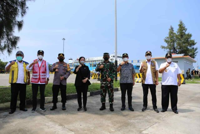 Pada kesempatan itu, rombongan melakukan peninjauan di posko penyekatan check point Pelabuhan Bakauheni.(Adpim)