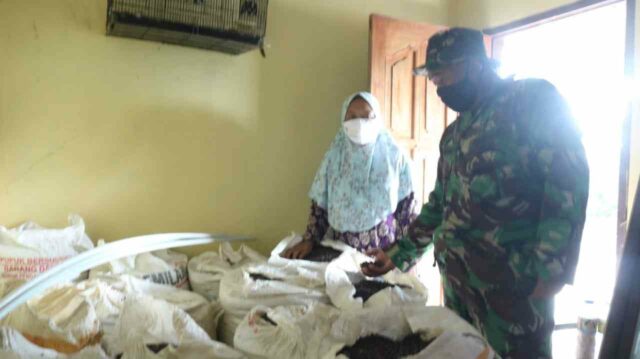 Banjarnegara – Anggota Satgas TMMD Reg 111 Ta 2021 Kodim 0704/Banjarnegara Peltu Sumijan melaksanakan Komunikasi Sosial (Komsos) di rumah Ibu Marni (56) Petani dan pengepul kopi lampung desa Kebutuhjurang Kecamatan Pagedongan Kabupaten Banjarnegara. Rabu (30/6/21).