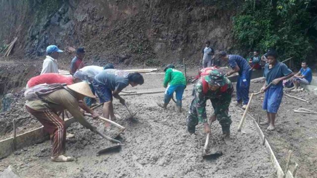 ”Target memang harus dikejar, namun demikian faktor keamanan jangan sampai diabaikan. Apalagi jika lokasi TMMD habis diguyur hujan, semuanya harus hati-hati, karena jalanan licin,” pesan Danramil Kapten Arh Rahmun.(Pendimbna).