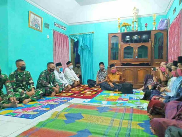 Banjarnegara – Anggota Satgas TMMD Reg 111 Kodim 0704 Banjarnegara, Serka Masrur bersama perwakilan pasukan SSK TMMD melaksanakan kegiatan Komsos yang dilanjutkan pengajian rutin di rumah Khayun (30) RT 03/09 dukuh Karangtengah Desa Kebutuhjurang Kecamatan Pagedongan Semoga pengajian ini bisa menambah keimanan dan juga keakraban kita semua. Senin (28/6/21).