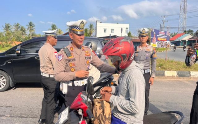 Onlinekoe.com, (BINTAN) – Satuan Lalu Lintas (Satlantas) Polres Bintan membawa ratusan paket takjil untuk dibagikan kepada para pejuang jalanan yang sedang menanti waktu berbuka puasa pada Rabu (25/2/2026). Sebanyak 150 paket takjil gratis dibagikan langsung kepada pengendara di Bundaran Km 16, Toapaya, Kabupaten Bintan, Kepulauan Riau, dalam aksi sosial bertajuk “Senyum Ramadan”.