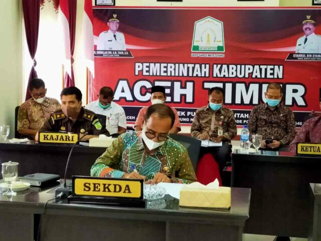 Onlinekoe.com, Aceh Timur – Sekretaris Daerah (Sekda) Ir. Mahyuddin, M.Si mewakili Bupati Aceh Timur H. Hasballah Bin H, M. Thaib, SH dan unsur Forkopimda setempat mengikuti Rapat Koordinasi Forum Pimpinan Daerah (Forkopimda) Provinsi dan Kabupaten/Kota Se-Aceh.