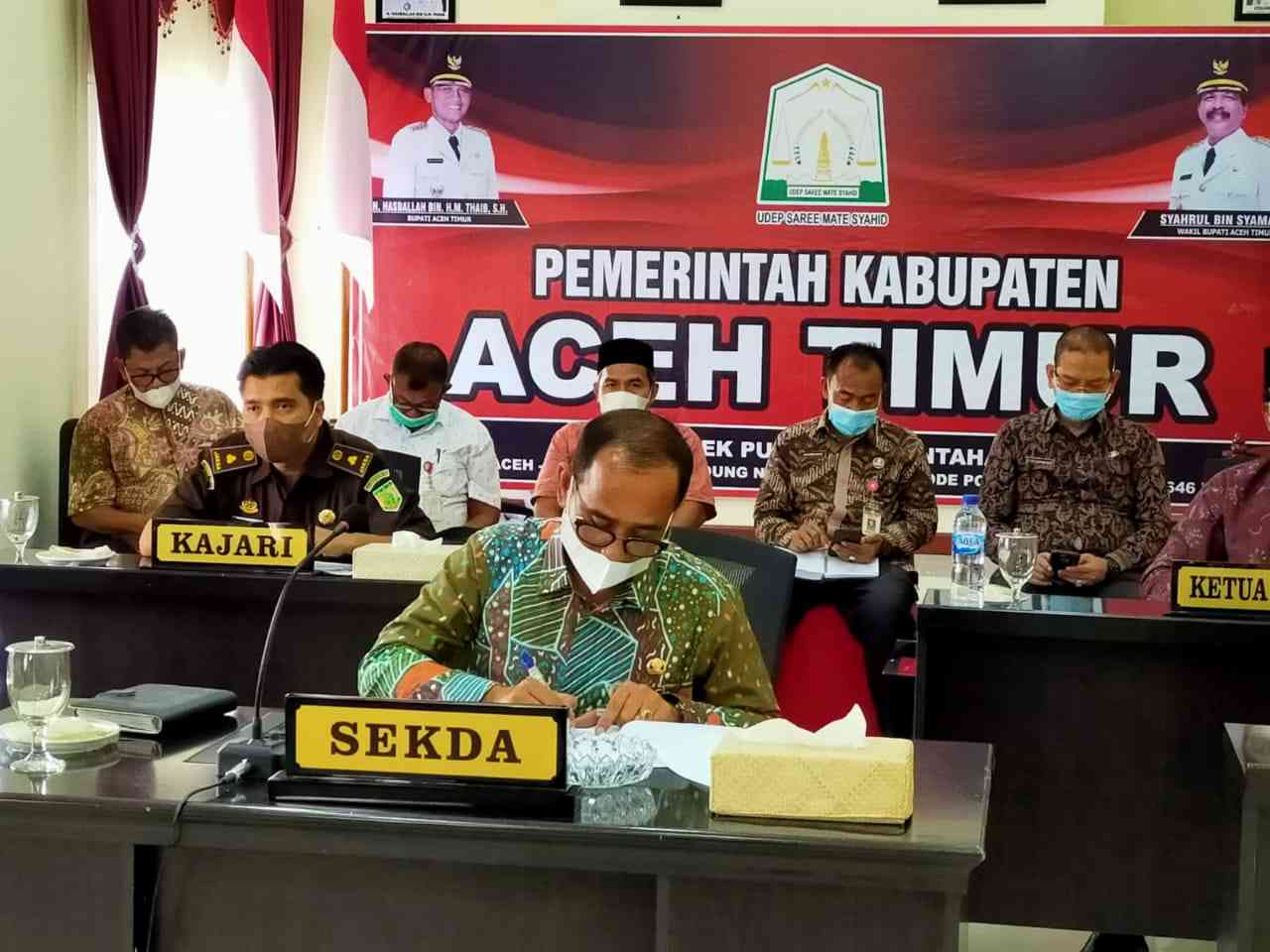 Dalam kegiatan ini turut hadir Kapolres Aceh Timur AKBP Eko Widiantoro, S.I.K, M.H, Ketua DPRK Aceh Timur Muhammad Daud, Perwakilan dari Dandim 0104 Aceh Timur, Kejari Aceh Timur dan sejumlah kepala OPD terkait lainnya. (Azhar)
