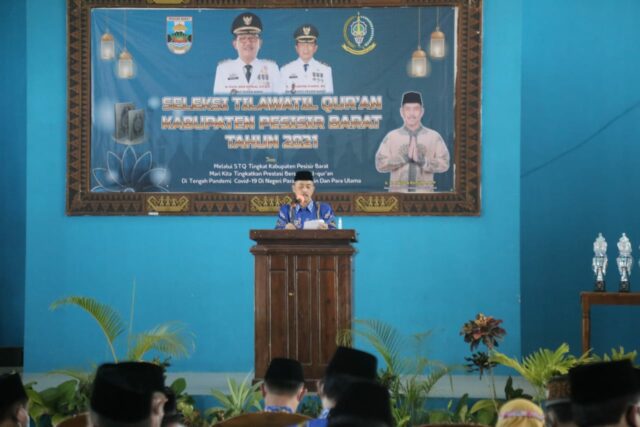 Dalam sambutan Bupati pesisir barat yang disampaikan oleh sekda pesisir barat menyampaikan, seperti kita sama-sama maklumi bahwa seleksi tilawatil qur’an (stq). yang kita laksanakan saat ini merupakan kegiatan yang baru pertama ini kita selenggarakan, karena disaat ini dalam kondisi yang penuh dengan keprihatinan terutama dengan pandemi covid 19 yang belum ada tanda-tanda akan berakhir. kondisi itu tentu saja menjadi beban yang cukup berat bagi pemerintah daerah dan membatasi ruang gerak masyarakat kita dalam beraktivitas dalam berbagai bidang. pemerintah pun menjalankan berbagai agenda pembangunan dan pemerintahan dengan kewajiban mematuhi rambu-rambu. akan tetapi kondisi yang demikian tidak menyurutkan semangat kita untuk melakukan persiapan stq kabupaten sebagai persiapan event stq di tingkat provinsi.