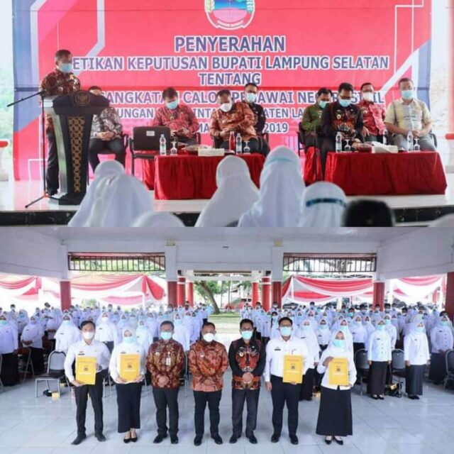 SK tersebut diserahkan kepada 356 orang CPNS Formasi Tahun 2019 yang sebelumnya telah lulus seleksi pada penerimaan CPNS Lamsel Tahun 2019 yang lalu. Diantaranya, 287 Orang Tenaga Guru, 48 Orang Tenaga Kesehatan dan 21 Orang Tenaga Teknis.