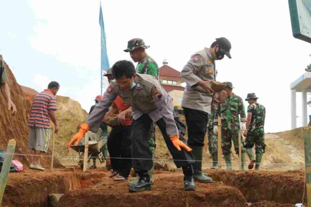 Banjarnegara – Polres Banjarnegara turut serta membantu program Tentara Manunggal Membangun Desa (TMMD) Ke-111 TMMD Reguler Ke-111 Kodim 0704/Banjarnegara di Desa Kebutuhjurang Kecamatan Pagedongan Banjarnegara.Senin (21/6/21)