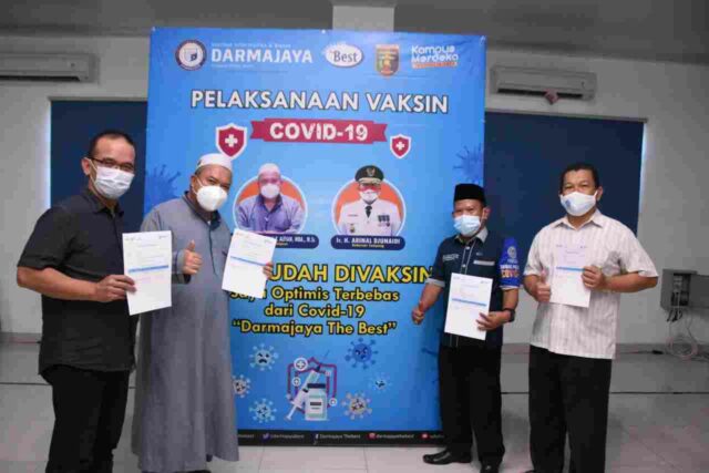Pelaksanaan vaksinasi dilakukan Dinas Kesehatan Provinsi Lampung dengan menurunkan empat tim ke kampus terbaik di Lampung itu. Pemberian coronaVac (vaksin Covid-19) dimulai dari jajaran pimpinan Institut Swasta Terbaik di Indonesia yakni Rektor IIB Darmajaya Dr. (Can) Ir. H. Firmansyah YA., MBA., MSc. dan jajarannya serta diikuti oleh seluruh karyawan dan dosen.
