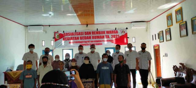 Onlinekoe.com, Tulangbawang – Pemerintah kabupaten Tulang Bawang lampung melalui dinas Perumahan Rakyat dan Kawasan Permukiman melakasanakan sosialisasi dan rembuk warga dalam pelaksanaan program bedah rumah tahun 2021di Kecamatan Menggala Timur Kampung Bedarow indah dan kampung sungai luar kabupaten setempat , beberapa waktu lalu.