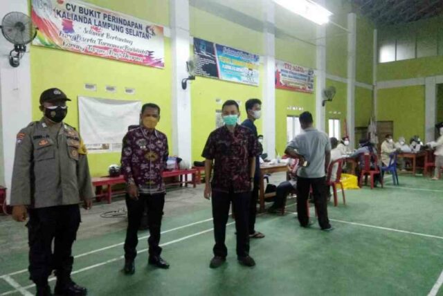 Pada bagian lain, di Kecamatan Way Panji, Pelaksana tugas (Plt) Kepala Dinas Perikanan, Dwi Jatmiko didampingi Camat Way Panji Isro Abdi, melakukan monitoring pelaksanaan vaksinasi yang dilaksanakan di Balai Desa Sidoharjo Kecamatan Way Panji.