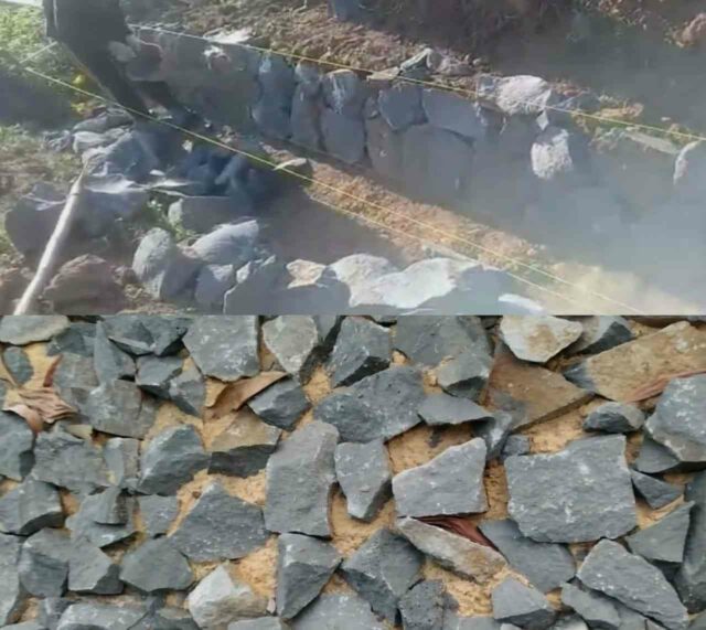 Dimana penyusunan batu seharusnya tiap sisi diisi memakai adukan semen, namun justru malah memakai tanah.