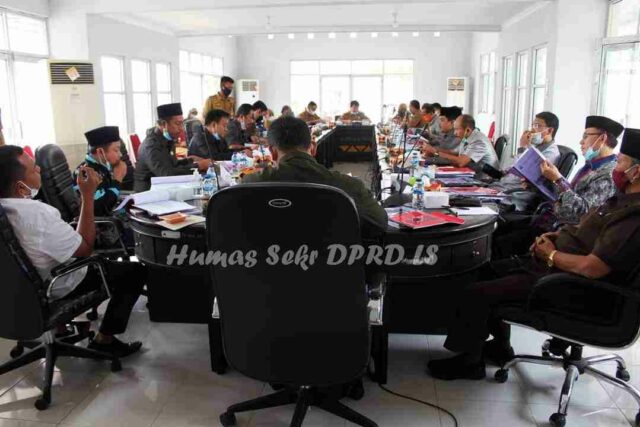 Rapat yang berlangsung di aula rumah dinas Ketua DPRD Kabupaten Lamsel dalam rangka membahas mengenai penyampaian draft Rancangan Peraturan Daerah Tentang Pendirian BUMD dan Penyertaan Modal. Senin, (22/02/21)