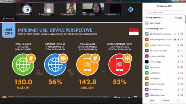 Onlinekoe.com, BANDAR LAMPUNG – Ratusan mahasiswa Program Studi Manajemen Institut Informatika dan Bisnis (IIB) Darmajaya mendapatkan materi Digital Marketing Menyongsong Era Society 5.0 dari Tokopedia melalui zoom Selasa, (20/1/2021).