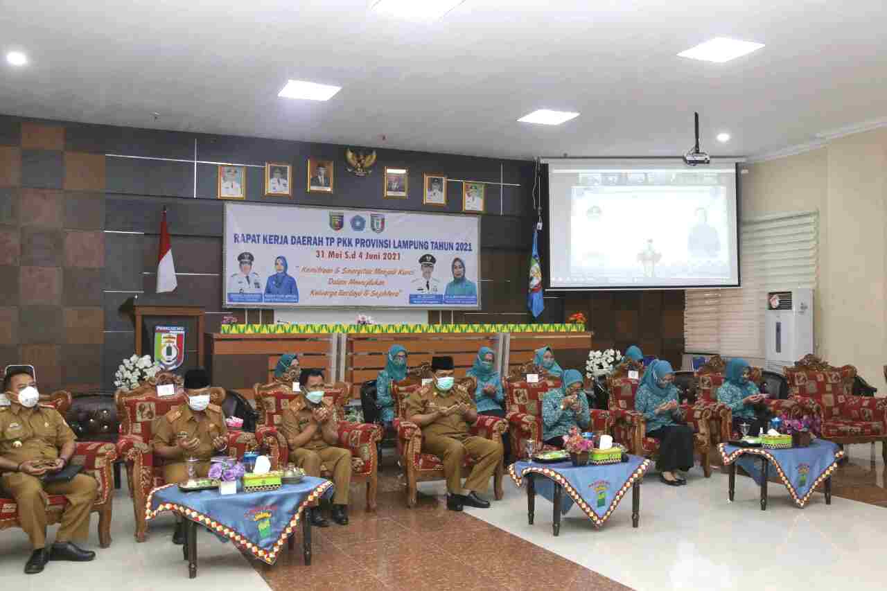 Rakerda yang juga diikuti oleh Sekretaris Umum TP-PKK Pusat melalui aplikasi Zoom Meeting ini, dibuka oleh Gubernur Lampung Ir.H.Arinal Djunaidi.