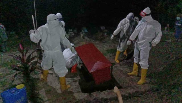 – Pada pukul 23.10 wib. almarhumah langsung di makamkan secara prokes oleh satgas covid 19 sat pol pp kab Lamsel di TPU dusun Sukarandek 2 desa Kuala Sekampung kec Sragi.