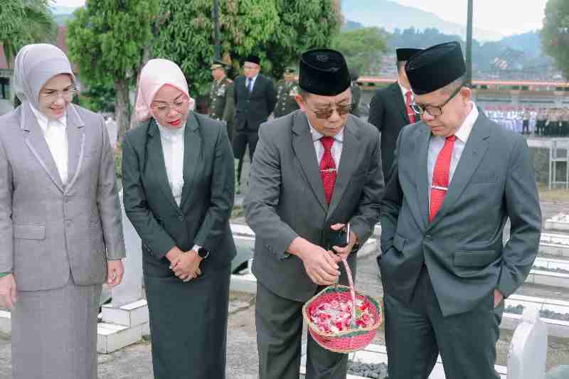 LAMPUNG — Upacara Ziarah Nasional dalam rangka Peringatan Hari Pahlawan ke-80 Tahun 2025 berlangsung khidmat di Taman Makam Pahlawan (TMP) Tanjung Karang, Bandar Lampung, Senin (10/11/2025).