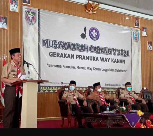 Onlinekoe.com, WAY KANAN – Wakil Bupati (Wabup) Way Kanan, Ali Rahman membuka pelaksanaan kegiatan Musyawarah Cabang (Muscab) V Gerakan Pramuka Kwartir Cabang (Kwarcab), di Gedung Serba Guna (GSG) kabupaten setempat, Rabu (07/07/2021).