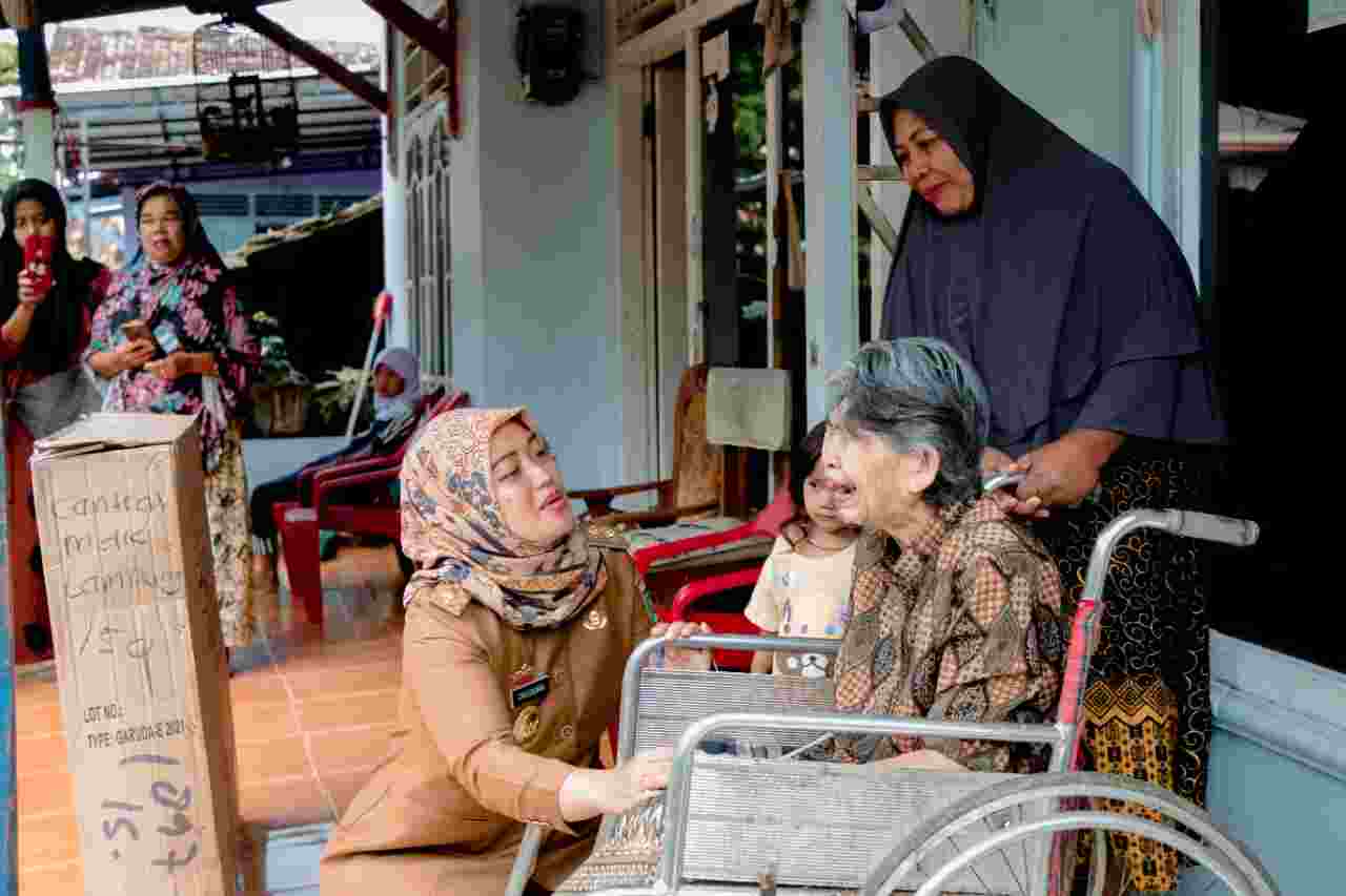 Wagub Chusnunia Beri Bantuan Kursi Roda kepada Warga Kemiling, Bandar Lampung