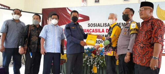 Onlinekoe.com, Lampung Selatan – Pemaparan sosialisasi pembinaan Ideologi Pancasila dan Wawasan Kebangsaan yang dilaksanakan di SMA Negeri 1, Desa Margomulyo Kecamatan Jati Agung Kabupaten Lampung Selatan (Lamsel), Sabtu (5/6/2021).