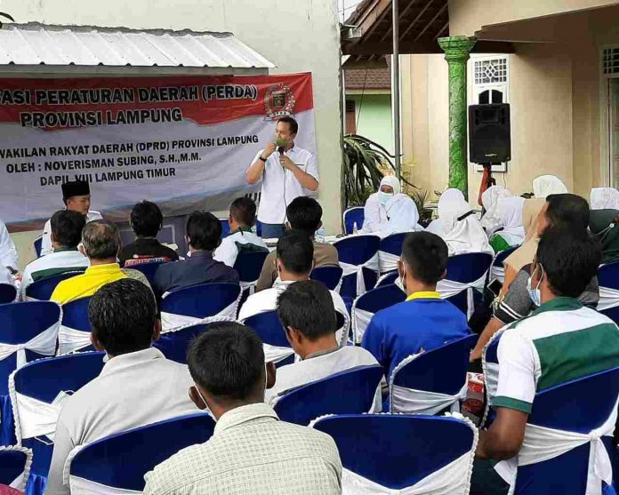 Penegasan itu disampaikan kepada tokoh masyarakat, tokoh pemuda dan agama saat menyampaikan Sosialisasi Peraturan Daerah Nomor 3 Tahun 2020 tentang adaptasi kebiasaan baru dalam pencegahan dan pengendalian Covid-19, di Desa Bandar Agung, Kecamatan Sekampung Udik, Lampung Timur belum lama ini.