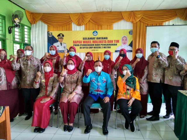 Onlinekoe.com, Kota Metro — Wakil Walikota Metro Qomaru menghadiri Kegiatan Pembinaan dan Pengarahan di UPTD SMP Negeri 2 Metro, Kamis, (06/05/21).
