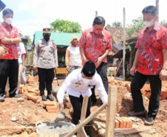 Onlinekoe.com, METRO — Walikota Metro lakukan peletakan batu pertama bedah rumah ke-18, kerja sama antara PSMTI Kota Metro dan Polres Metro, di Jalan Salak, Yosomulyo, Rabu (31/03/2021).