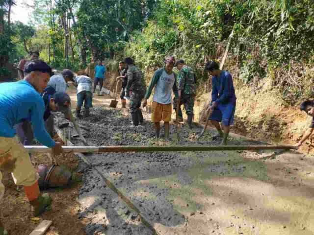 Warga Desa Kebutuhjurang Gotong Royong Bersama Dengan Satgas TMMD