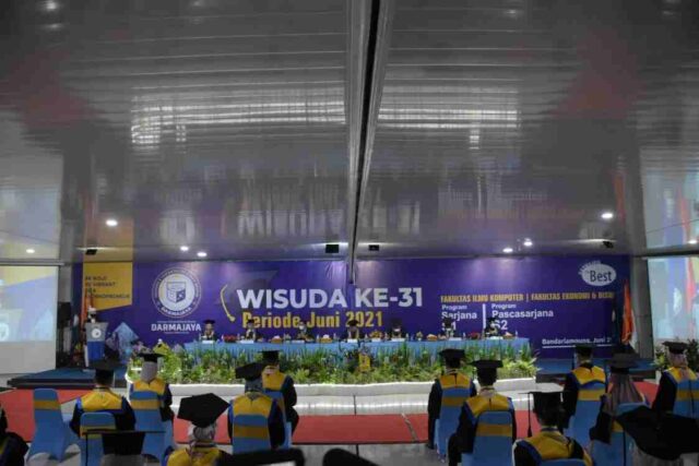 Onlinekoe.com, BANDARLAMPUNG – Sebanyak 342 lulusan dari Program Pascasarjana dan Sarjana mengikuti prosesi Sidang Senat Luar Biasa dan Terbuka Wisuda ke-31 Institut Informatika dan Bisnis (IIB) Darmajaya, dengan protokol kesehatan Covid-19, di Aula Lantai 3 Gedung Alfian Husin, Selasa, (15/6/2021).